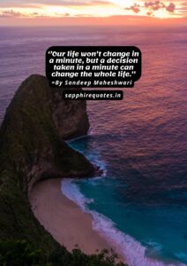17) ”Our life won’t change in a minute, but a decision taken in a minute can change the whole life.”