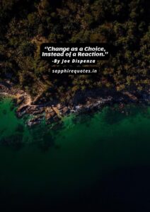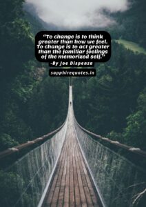 58) ”Crossing the river of change requires that you leave the same familiar predictable self—connected to the same thoughts, same choices, same behaviors, and same feelings—and step into a void or the unknown.”