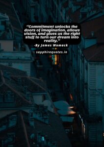 33) ”Commitment unlocks the doors of imagination, allows vision, and gives us the right stuff to turn our dream into reality.”- James Womack