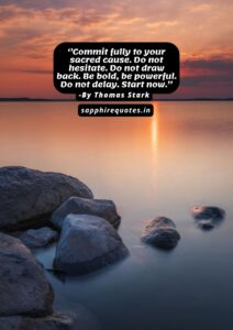 57) ”Commit fully to your sacred cause. Do not hesitate. Do not draw back. Be bold, be powerful. Do not delay. Start now.”-Thomas Stark