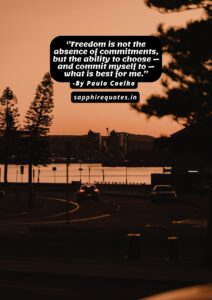 7) ”Freedom is not the absence of commitments, but the ability to choose — and commit myself to — what is best for me.”-Paulo Coelho