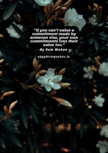 23) ”If you can’t value a commitment made by someone else, your own commitments lose their value too.”-Ram Mohan