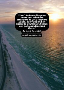39) ”Don’t behave like your heart and mind are strangers to you; they are yours, don’t depend on others to understand them, you got to understand them.”