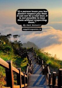 04) ”If a person loves you but doesn’t respect you then it can not be a real love. It is not possible to love them without respecting them.”