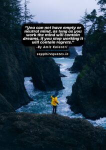 76) ”You can not have empty or neutral mind, as long as you work the mind will contain dreams, if you stop working it will contain regrets.”