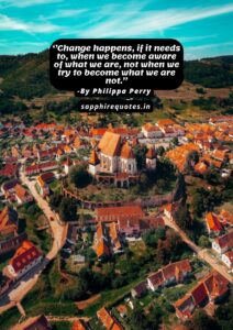 64) ”Change happens, if it needs to, when we become aware of what we are, not when we try to become what we are not.” -Philippa Perry
