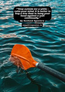 77) ”Step outside for a while – calm your mind. It is better to hug a tree than to bang your head against a wall continually.” -Rasheed Ogunlaru