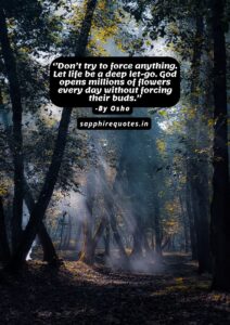 25) ”Don’t try to force anything. Let life be a deep let-go. God opens millions of flowers every day without forcing their buds.” -Osho