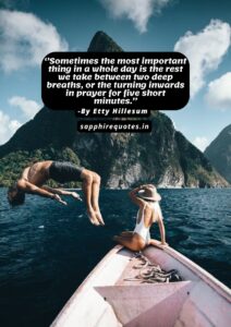 36) ”Sometimes the most important thing in a whole day is the rest we take between two deep breaths, or the turning inwards in prayer for five short minutes.” -Etty Hillesum
