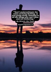 40) ”Don’t underestimate the value of Doing Nothing, of just going along, listening to all the things you can’t hear, and not bothering.”-Winnie the Pooh