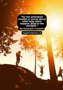 45) ”Do not anticipate trouble or worry about what may never happen. Keep in the sunlight.”-Benjamin Franklin