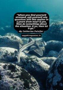 52) ”When you find yourself stressed, ask yourself one question: Will this matter in 5 years from now? If yes, then do something about the situation. If no, then let it go.”-Catherine Pulsifer