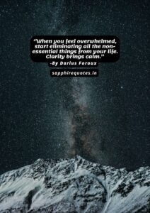6) ”When you feel overwhelmed, start eliminating all the non-essential things from your life. Clarity brings calm.”- Darius Foroux