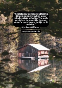 9) ”Resistance creates suffering. Stress happens when your mind resists what is. The only problem in your life is your mind’s resistance to life as it unfolds.”-Dan Millman