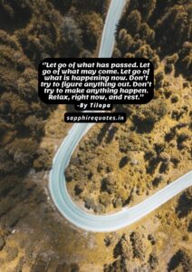 21) ”Let go of what has passed. Let go of what may come. Let go of what is happening now. Don’t try to figure anything out. Don’t try to make anything happen. Relax, right now, and rest.”-Tilopa