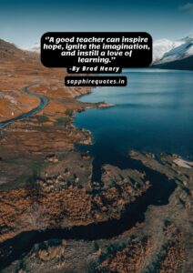 1) ”A good teacher can inspire hope, ignite the imagination, and instill a love of learning.”- Brad Henry