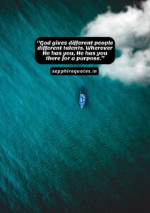 34) ”God gives different people different talents. Wherever He has you, He has you there for a purpose.”