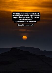 01) ‘’ Character is determined more by the lack of certain experiences than by those one has had.’’ -Friedrich Nietzsche