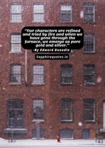 93) ‘’ Our characters are refined and tried by fire and when we have gone through the furnace, we emerge as pure gold and silver.’’ -Edward Dunedin