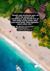 57) ”Doubt can motivate you, so don’t be afraid of it. Confidence and doubt are at two ends of the scale, and you need both. They balance each other out.” -Barbra Streisand