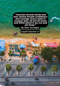 85) ”Inaction breeds doubt and fear. Action breeds confidence and courage. If you want to conquer fear, do not sit home and think about it. Go out and get busy.”-Dale Carnegie