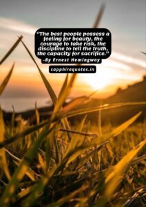 9) ”The best people possess a feeling for beauty, the courage to take risk, the discipline to tell the truth, the capacity for sacrifice.”