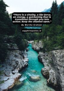 67) ”There is a vitality, a life-force, an energy, a quickening that is translated through you into action. Keep the channel open.” – Martha Graham
