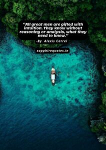 77) ”All great men are gifted with intuition. They know without reasoning or analysis, what they need to know.” – Alexis Carrel