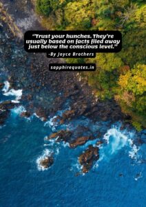 78) ”Trust your hunches. They’re usually based on facts filed away just below the conscious level.” -Joyce Brothers
