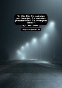 53) ”In this life, it’s not what you hope for, it’s not what you deserve – it’s what you take!”