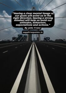 37) ”Having a clear mental image of our goals will point us in the right direction. Having a strong mindset will help us mold our attitudes, behaviors, expectations and actions.” – John Franz