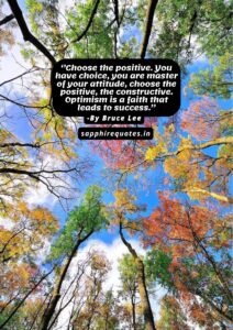 65) ”Choose the positive. You have choice, you are master of your attitude, choose the positive, the constructive. Optimism is a faith that leads to success.”