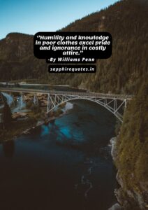 16) ”Humility and knowledge in poor clothes excel pride and ignorance in costly attire.”- Williams Penn
