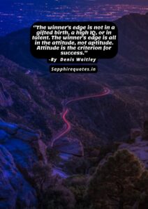 71) ”The winner’s edge is not in a gifted birth, a high IQ, or in talent. The winner’s edge is all in the attitude, not aptitude. Attitude is the criterion for success.”- Denis Waitley