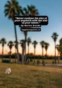 89) ”Never confuse the size of your payback with the size of your talent.”-Marlon Brando