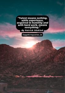 11) ”Talent means nothing, while experience, acquired in humility and with hard work, means everything.”- Patrick Süskind