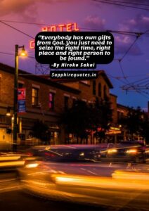 39) ”Everybody has own gifts from God. You just need to seize the right time, right place and right person to be found.”- Hiroko Sakai