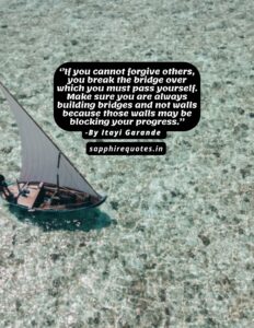 05) ”If you cannot forgive others, you break the bridge over which you must pass yourself. Make sure you are always building bridges and not walls because those walls may be blocking your progress.”