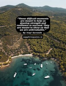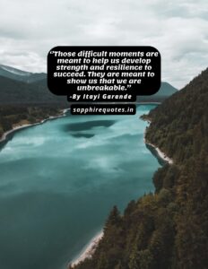 38) ”Those difficult moments are meant to help us develop strength and resilience to succeed. They are meant to show us that we are unbreakable.”
