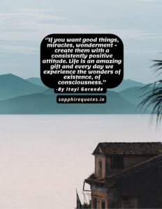 31) ”If you want good things, miracles, wonderment – create them with a consistently positive attitude. Life is an amazing gift and every day we experience the wonders of existence, of consciousness.”
