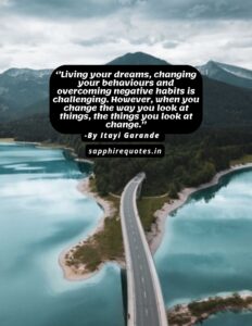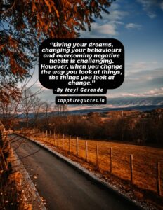 16) ”Living your dreams, changing your behaviours and overcoming negative habits is challenging. However, when you change the way you look at things, the things you look at change.”