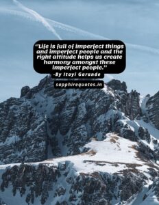 29) ”Life is full of imperfect things and imperfect people and the right attitude helps us create harmony amongst these imperfect people.”