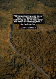 61) ”Strong people alone know how to organize their suffering so as to bear only the most necessary pain. ”-Emil Dorian