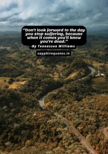 69) ”Don’t look forward to the day you stop suffering, because when it comes you’ll know you’re dead.”-Tennessee Williams