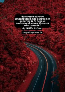 74) ”We create our own unhappiness. The purpose of suffering is to help us understand we are the ones who cause it.”-Willie Nelson