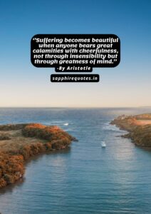 98) ”Suffering becomes beautiful when anyone bears great calamities with cheerfulness, not through insensibility but through greatness of mind.”- Aristotle