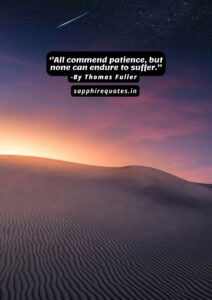8) ”All commend patience, but none can endure to suffer.”-Thomas Fuller