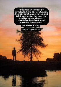 12) ”Character cannot be developed in ease and quiet. Only through experience and trial and suffering can the soul be strengthened, ambition inspired, and success achieved.”- Helen Keller