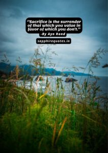 63) ”Sacrifice is the surrender of that which you value in favor of which you don’t.”- Ayn Rand