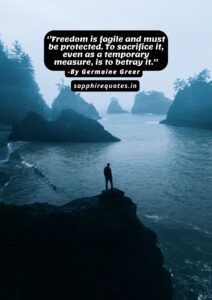 35) ”Freedom is fagile and must be protected. To sacrifice it, even as a temporary measure, is to betray it.”- Germaine Greer